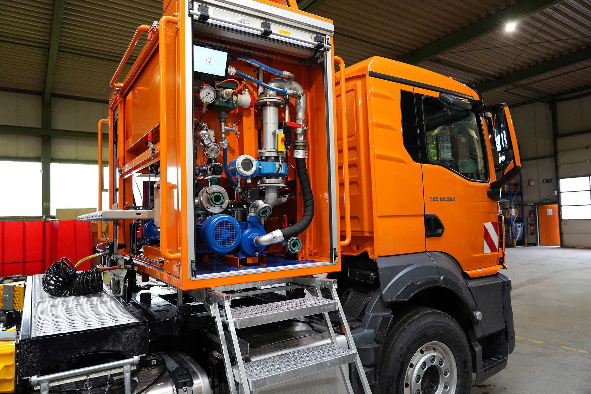 Another highlight of this customized solution for Oczyszczanie ścieków przemysłowych is the hydraulic leveling system. It ensures that the oil separator is always perfectly level, regardless of the vehicle’s position. This precise alignment guarantees that the separation of light liquids is always efficient and safe. The system thus ensures optimal operation and maximizes the oil separator’s performance in mobile wastewater treatment.